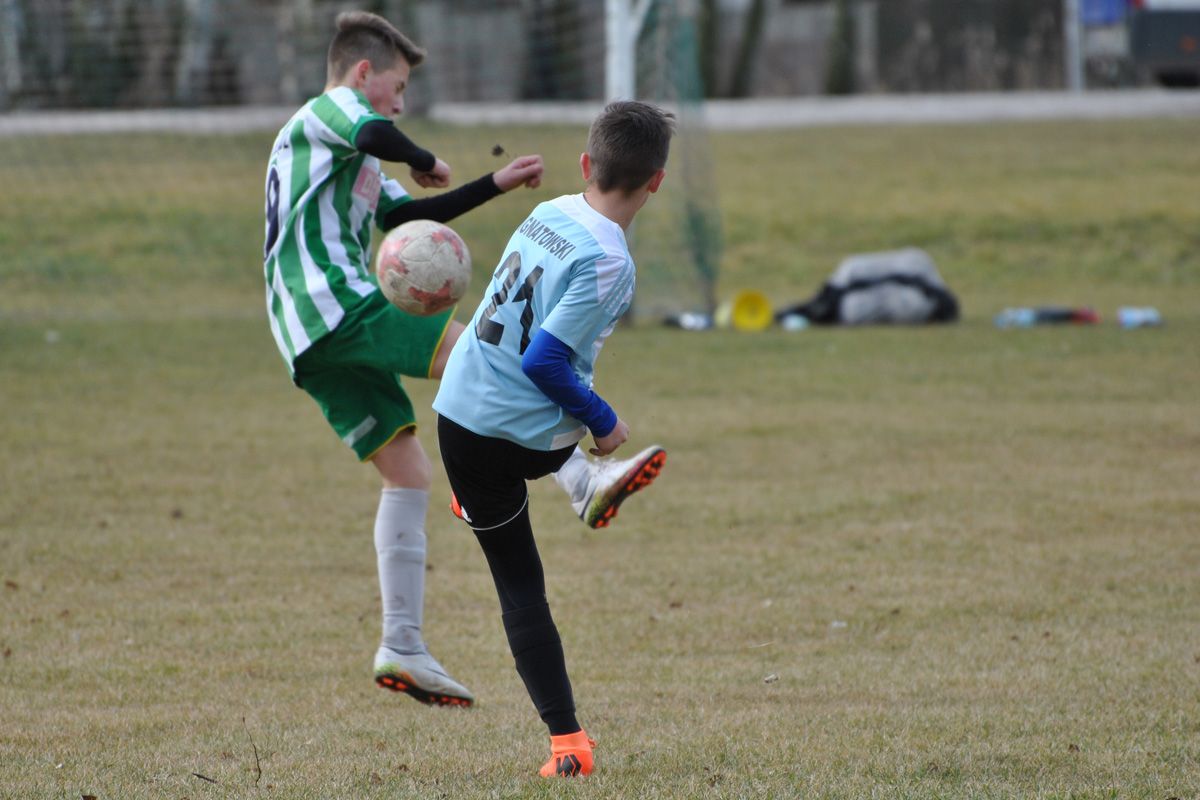 Od samego początku pogoda nie rozpieszczała zawodników Orląt. Największym przeciwnikiem tego spotkania był silny wiatr, który utrudniał rozgrywanie piłki. Orlęta miały kilka dobrych akcji ale nie potrafili ich wykorzystać. Dobrze na bramce spisywał się Tymoteusz, który obronił dużą ilość strzałów. Obrońcy oraz środkowi pomocnicy również grali bez zarzutów. Niestety jeszcze w pierwszej połowie przeciwnik lekkim uderzeniem umieszcza piłkę w naszej bramce.